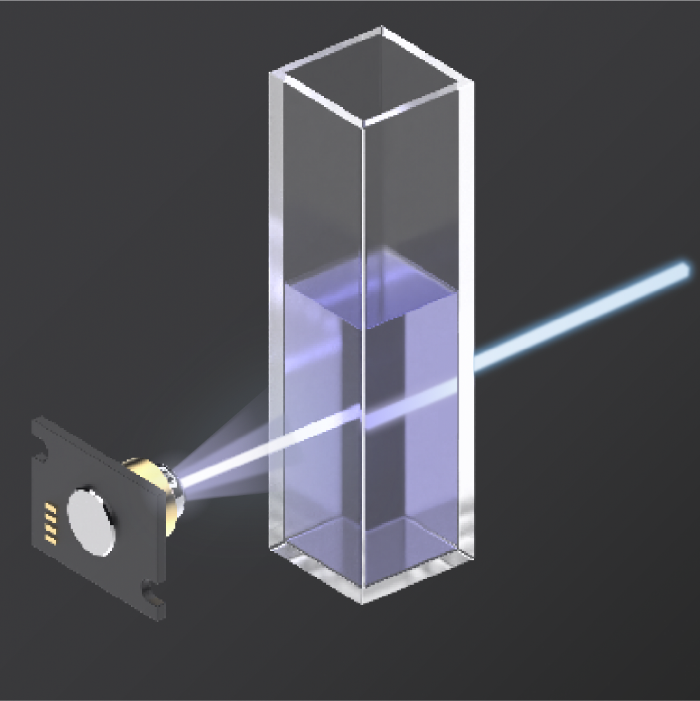 High-precision extinction measurement across the full visible spectrum (360–700 nm). No moving parts. Built for direct integration into portable or benchtop analyzers.